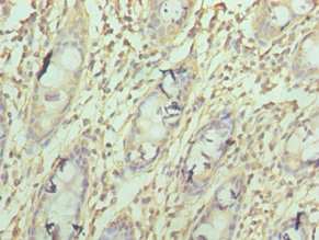 Immunohistochemistry of paraffin-embedded human colon cancer using CSB-PA005832ESR1HU at dilution of 1:100