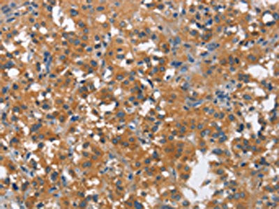 The image on the left is immunohistochemistry of paraffin-embedded Human thyroid cancer tissue using CSB-PA584549(COX5A Antibody) at dilution 1/25, on the right is treated with synthetic peptide. (Original magnification: ×200)