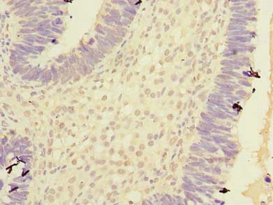 Immunohistochemistry of paraffin-embedded human colon cancer using CSB-PA005876LA01HU at dilution of 1:100