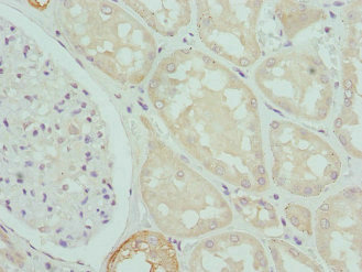 Immunohistochemistry of paraffin-embedded human kidney tissue using CSB-PA005898ESR2HU at dilution of 1:100