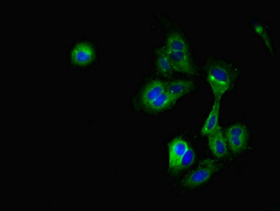 Immunofluorescent analysis of Hela cells using CSB-PA005970DSR2HU at dilution of 1:100 and Alexa Fluor 488-congugated AffiniPure Goat Anti-Rabbit IgG(H+L)