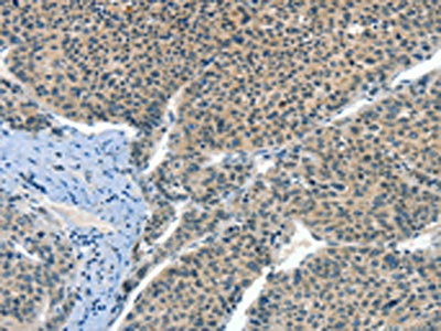 The image on the left is immunohistochemistry of paraffin-embedded Human liver cancer tissue using CSB-PA976066(CRLF2 Antibody) at dilution 1/60, on the right is treated with synthetic peptide. (Original magnification: ×200)