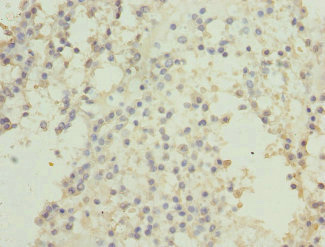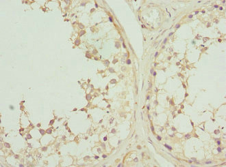 Immunohistochemistry of paraffin-embedded human testis tissue using CSB-PA006070ESR2HU at dilution of 1:100