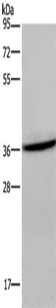 Gel: 8%SDS-PAGE, Lysate: 40 μg, Lane: Mouse brain tissue, Primary antibody: CSB-PA188638(CXCR6 Antibody) at dilution 1/400, Secondary antibody: Goat anti rabbit IgG at 1/8000 dilution, Exposure time: 2 minutes
