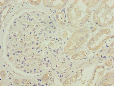 Immunohistochemistry of paraffin-embedded human kidney tissue using CSB-PA006310LA01HU at dilution of 1:100
