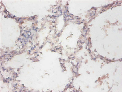 Immunohistochemistry of paraffin-embedded human lung tissue using CSB-PA02655A0Rb at dilution of 1:100