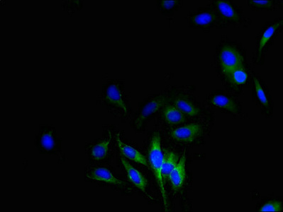 Immunofluorescent analysis of Hela cells using CSB-PA006325LA01HU at dilution of 1:100 and Alexa Fluor 488-congugated AffiniPure Goat Anti-Rabbit IgG(H+L)