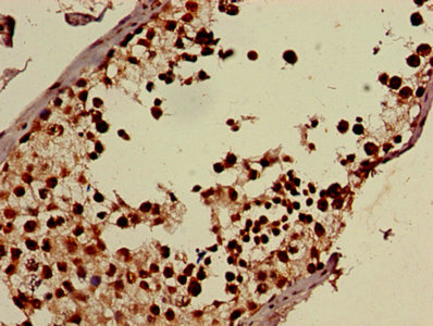Immunohistochemistry of paraffin-embedded human testis tissue using CSB-PA00304A0Rb at dilution of 1:100