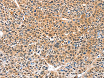 The image on the left is immunohistochemistry of paraffin-embedded Human liver cancer tissue using CSB-PA178606(DDX4 Antibody) at dilution 1/20, on the right is treated with fusion protein. (Original magnification: ×200)
