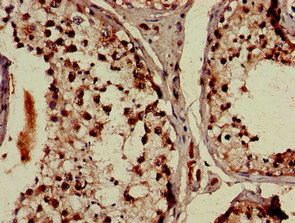 Immunohistochemistry of paraffin-embedded human testis tissue using CSB-PA882074LA01HU at dilution of 1:100