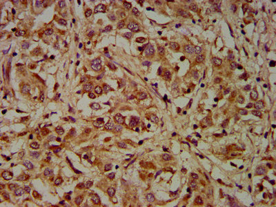 IHC image of CSB-PA006963LA01HU diluted at 1:200 and staining in paraffin-embedded human liver cancer performed on a Leica BondTM system. After dewaxing and hydration, antigen retrieval was mediated by high pressure in a citrate buffer (pH 6.0). Section was blocked with 10% normal goat serum 30min at RT. Then primary antibody (1% BSA) was incubated at 4°C overnight. The primary is detected by a biotinylated secondary antibody and visualized using an HRP conjugated SP system.