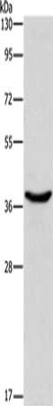 Gel: 15%SDS-PAGE, Lysate: 40 μg, Lane: 293T cells, Primary antibody: CSB-PA183145(DNAJB1 Antibody) at dilution 1/750, Secondary antibody: Goat anti rabbit IgG at 1/8000 dilution, Exposure time: 1 second