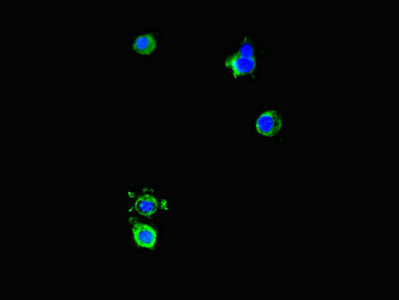 Immunofluorescent analysis of Hela cells using CSB-PA615670LA01HU at dilution of 1:100 and Alexa Fluor 488-congugated AffiniPure Goat Anti-Rabbit IgG(H+L)