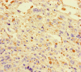 Immunohistochemistry of paraffin-embedded human melanoma using CSB-PA615670LA01HU at dilution of 1:100