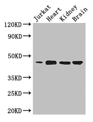 Positive WB detected in: Jurkat whole cell lysate, Mouse heart tissue, Mouse kidney tissue, Mouse brain tissue