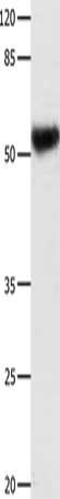 Gel: 10%SDS-PAGE, Lysate: 40 μg, Lane: Human notum skin cancer tissue, Primary antibody: CSB-PA338014(DOK3 Antibody) at dilution 1/250, Secondary antibody: Goat anti rabbit IgG at 1/8000 dilution, Exposure time: 30 seconds