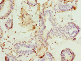 Immunohistochemistry of paraffin-embedded human breast cancer using CSB-PA007175ESR2HU at dilution of 1:100