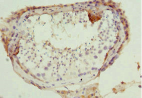 Immunohistochemistry of paraffin-embedded human testis tissue using CSB-PA007175ESR2HU at dilution of 1:100