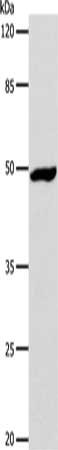 Gel: 10%SDS-PAGE, Lysate: 30 μg, Lane: Hela cells, Primary antibody: CSB-PA343762(DRD1 Antibody) at dilution 1/1000, Secondary antibody: Goat anti rabbit IgG at 1/8000 dilution, Exposure time: 1 minute