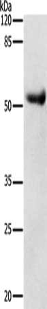 Gel: 10%SDS-PAGE, Lysate: 30 μg, Lane: Human liver cancer tissue, Primary antibody: CSB-PA967891(DRD4 Antibody) at dilution 1/600, Secondary antibody: Goat anti rabbit IgG at 1/8000 dilution, Exposure time: 1 minute