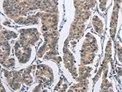 The image on the left is immunohistochemistry of paraffin-embedded Human breast cancer tissue using CSB-PA025645(DSG2 Antibody) at dilution 1/50, on the right is treated with fusion protein. (Original magnification: ×200)