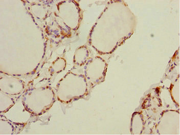 Immunohistochemistry of paraffin-embedded human thyroid tissue using CSB-PA803123ESR2HU at dilution of 1:100