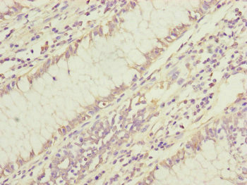 Immunohistochemistry of paraffin-embedded human colon cancer using CSB-PA007293ESR2HU at dilution of 1:100