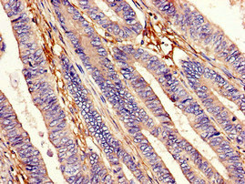 Immunohistochemistry of paraffin-embedded human colon cancer using CSB-PA007405LA01HU at dilution of 1:100