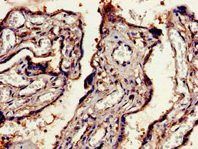 Immunohistochemistry of paraffin-embedded human placenta tissue using CSB-PA007405LA01HU at dilution of 1:100