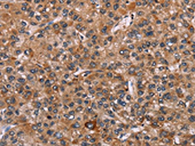 The image on the left is immunohistochemistry of paraffin-embedded Human liver cancer tissue using CSB-PA205879(EGR4 Antibody) at dilution 1/20, on the right is treated with synthetic peptide. (Original magnification: ×200)