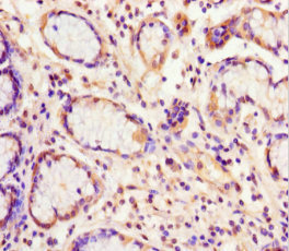 Immunohistochemistry of paraffin-embedded human gastric cancer using CSB-PA007582LA01HU at dilution of 1:100