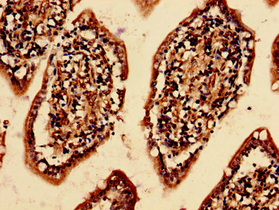 Immunohistochemistry analysis of human small intestine tissue using CSB-PA007582LA01HU at dilution of 1:100