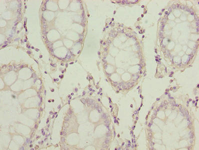 Immunohistochemistry of paraffin-embedded human colon cancer using CSB-PA02395A0Rb at dilution of 1:100