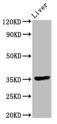 Predicted band size: 35 kDa