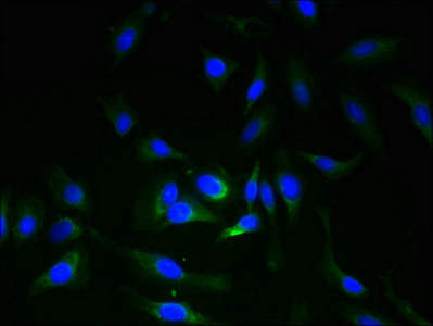 Immunofluorescent analysis of Hela cells using CSB-PA896688LA01HU at dilution of 1:100 and Alexa Fluor 488-congugated AffiniPure Goat Anti-Rabbit IgG(H+L)