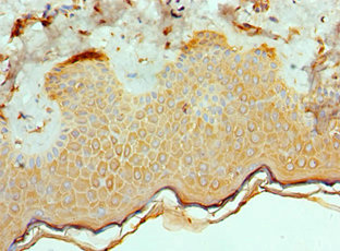 Immunohistochemistry of paraffin-embedded human skin tissue using CSB-PA007860ESR1HU at dilution of 1:100