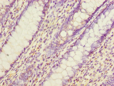 Immunohistochemistry of paraffin-embedded human colon cancer using CSB-PA003777LA01HU at dilution of 1:100
