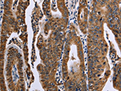 The image on the left is immunohistochemistry of paraffin-embedded Human gastric cancer tissue using CSB-PA993404(FAF1 Antibody) at dilution 1/50, on the right is treated with synthetic peptide. (Original magnification: ×200)