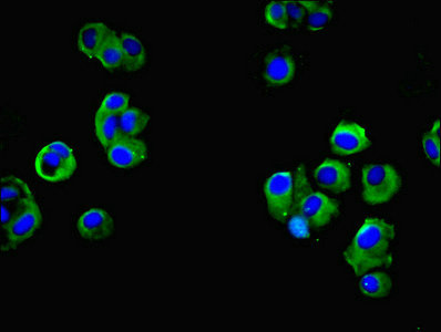 Immunofluorescent analysis of 293T cells using CSB-PA885747LA01HU at dilution of 1:100 and Alexa Fluor 488-congugated AffiniPure Goat Anti-Rabbit IgG(H+L)