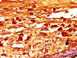 Immunohistochemistry of paraffin-embedded human melanoma using CSB-PA008456LA01HU at dilution of 1:100