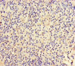 Immunohistochemistry of paraffin-embedded human spleen tissue using CSB-PA008619LA01HU at dilution of 1:100
