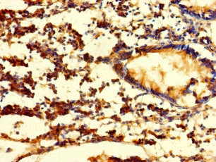 Immunohistochemistry of paraffin-embedded human appendix tissue using CSB-PA008619LA01HU at dilution of 1:100