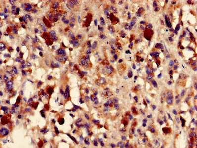 Immunohistochemistry of paraffin-embedded human melanoma using CSB-PA008659LA01HU at dilution of 1:100