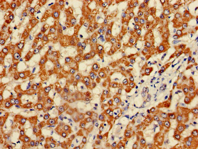 Immunohistochemistry of paraffin-embedded human liver cancer using CSB-PA008659LA01HU at dilution of 1:100