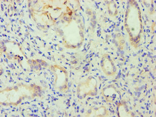 Immunohistochemistry of paraffin-embedded human kidney tissue using CSB-PA008700ESR1HU at dilution of 1:100