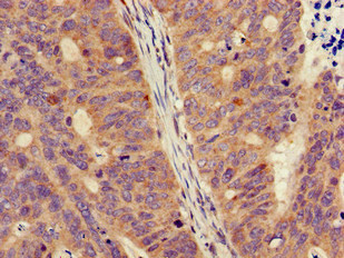 Immunohistochemistry of paraffin-embedded human colon cancer using CSB-PA008856LA01HU at dilution of 1:100