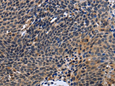 The image is immunohistochemistry of paraffin-embedded Human cervical cancer tissue using CSB-PA048430(FSTL1 Antibody) at dilution 1/30. (Original magnification: ×200)