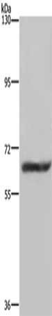 Gel: 6%SDS-PAGE, Lysate: 40 μg, Lane: Human fetal brain tissue, Primary antibody: CSB-PA958648(FTO Antibody) at dilution 1/650, Secondary antibody: Goat anti rabbit IgG at 1/8000 dilution, Exposure time: 5 minutes