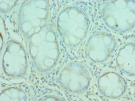 Immunohistochemistry of paraffin-embedded human colon cancer using CSB-PA613389ESR1HU at dilution of 1:100