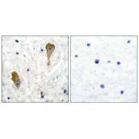 Immunohistochemical analysis of paraffin-embedded human brain tissue using GAD67 antibody.